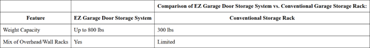 • Comparisons between overhead garage storage and standard storage racks